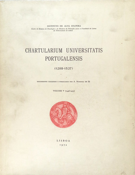 Clique nas imagens para aumentar. CHARTULARIUM UNIVERSITATIS PORTUGALENSIS (1288-1537), VOLUME V (1446-1455).Documentos coligidos e publicados por A. Moreira de Sá. Centro de Estudos de Psicologia e de História da Filosofia anexo à Faculdade de Letras da Universidade de Lisboa. Instituto de Alta Cultura. Lisboa. 1970. De 30x23 cm. Com XIV, 509, [viii] págs. Brochado. Ilustrado em extra-texto sobre papel couché, reproduzindo vários documentos iconográficos e manuscritos a preto e branco. Exemplar por Abrir, apresentando picos de humidade no corte superior por folhas. Volume quinto de uma colectânea de documentos medievais consagrada ao exame da composição e funcionamento do Estudo Geral (ou Universidade) em Portugal entre os séculos XIV e XVI. Publicada entre 1966 e 2004, a obra compõem-se em 16 volumes independentes contendo transcrições de Petições e Letras Apostólicas, Cartas régias ou particulares, assentos universitários, pareceres e documentos notariais, entre outros, que o leitor poderá consultar ainda em anexo, num índice cronológico de grande utilidade para investigadores e estudantes. Neste volume arquivam-se documentos produzidos entre 19 de Fevereiro de 1446 e 23 de Dezembro de 1455, num total de 403 espécies manuscritos e impressos. Referência: 1709JR007