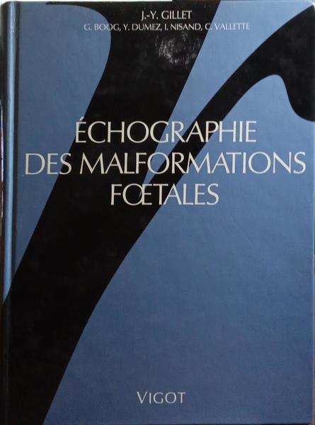 Clique nas imagens para aumentar. GILLET. (Jean-Yves) e outros. ÉCHOGRAPHIE DES MALFORMATIONS FOETALES.[Por] J.-Y. Gillet, G. Boog, Y. Dumez, I. Nisand, e C. Vallette. Avec la collaboration de: M.-C. Aubry, [...]. Éditions Vigot. Paris. 1990. De 27x20 cm. Com xviii, 526 págs. Encadernação do editor. Ilustrado no texto com tabelas, gráficos e fotografias a preto e branco e a cores. Exemplar com etiqueta comercial na pasta posterior, assinatura de posse na folha de rosto e sublinhados a tinta nas folhas preliminares. Impresso sobre papel couché, com texto disposto em duas colunas.