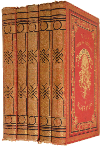 Obra dividida em 10 volumes segundo a estrutura original francesa, aqui distribuídos por 5 volumes físicos: Primeiro Volume: Fantina. Segundo Volume: Cosette. Terceiro Volume: Marius. Sexto Volume: Marius [Continuação]. Sétimo Volume: L"Idylle Rue Plumet et L"Épopée Rue Saint-Denis. Oitavo Volume: L"Idylle Rue Plumet et L"Épopée Rue Saint-Denis [Continuação]. Nono Volume: Jean Valjean. Décimo Volume: Jean Valjean [Continuação]. Apresenta nas últimas páginas de cada volume físico índices de capítulos e de gravuras.