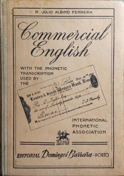 Clique nas imagens para aumentar. FERREIRA. (Júlio Albino) COMMERCIAL ENGLISH COM A TRANSCRIÇÃO FONÉTICA DA ASSOCIAÇÃO FONÉTICA INTERNACIONAL.Pelo P.ª... 7.ª Edição. Revista pelo Dr. Bertino Daciano.Editorial Domingos Barreira. Porto. 1951. De 21x14,5 cm. Com 288 págs. Encadernação do editor. Ilustrado no texto com tabelas e gravuras. Exemplar com algumas manchas de humidades. Referência: 2509DG349