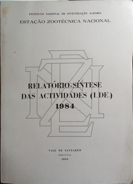 Clique nas imagens para aumentar. RELATÓRIO-SÍNTESE DAS ACTIVIDADES (I. DE.) 1984.Ministério da Agricultura Florestas e Alimentação. Instituto Nacional de Investigação Agrária e de Extensão Rural. Estação Zootécnica Nacional Vale de Santarém. 1985. De 29x21 cm. Com [xiv], 108 págs. Brochado. Ilustrado no texto com tabelas e mapa. Referência: 2509DG390