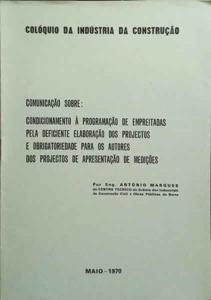 Pela Deficiente Elaboração dos Projectos e Obrigatoriedade para os Autores dos Projectos de Apresentação de Medições. Por Eng... do Centro Técnico do Grémio dos Industriais da Construção Civil e Obras Públicas do Norte. Colóquio da Indústria da Construção. Grafitécnica. Lisboa. 1970.