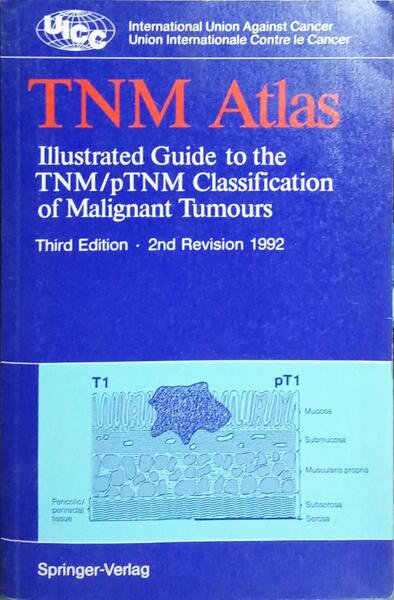Illustrated Guide to the TNM/pTNM Classification of Malignant Tumours. Edited by..., O.H. Beahrs, P. Hermanek, R.V.P. Hutter, O. Scheibe, L.H. Sobin e G. Wahner. With 470 Figures and an insert with summaries of the T and N definitions by site. Third Edition. 2nd Revision 1992. UICC - International Union Against Cancer, Union Internationale Contre le Cancer. Springer-Verlag. New York. 1992.