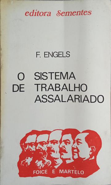 | Clique nas imagens para aumentar. ENGELS. (Friederich) O SISTEMA DE TRABALHO ASSALARIADO.Foice e Martelo. [Por] F. Engels. Editora Sementes. Porto. 1976. De 18,5x11 cm. Com 55, [viii] págs. Brochado.