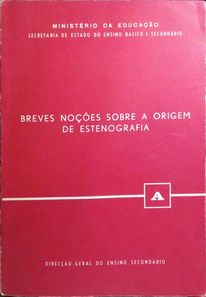 Clique nas imagens para aumentar. BREVES NOÇÕES SOBRE A ORIGEM DE ESTENOGRAFIA.Ministério da Educação. Secretaria de Estado do Ensino Básico e Secundário. Direcção-Geral do Ensino Secundário. S.l. 1979. De 24x17 cm. Com 122 págs. Brochado. Exemplar com assinatura de posse e carimbo oleográfico de posse na folha de rosto, assinatura de posse na última pág. 122, lombada manuseada e anotações a lápis. Referência: 2510PA202
