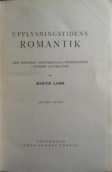 Clique nas imagens para aumentar. LAMM. (Martin) UPPLYSNIN GSTIDENS ROMANTIK.Den Mystiskt Sentimentala Strömningen i Svensk Litteratur. Av... Senare Delen Hugo Gebers Förlag. Stockholm. 1920. De 24x16 cm. Com xi, 600 págs. Encadernação do editor. Exemplar algumas e sublinhados a lápis no texto. Referência: 2511DG338