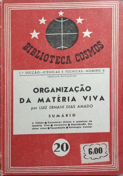 Clique nas imagens para aumentar. DIAS AMADO. (Luiz Ernani) ORGANIZAÇÃO DA MATÉRIA VIVA. [ENC.]Por... Biblioteca Cosmos. Direcção do Prof. Bento de Jesus Caraça (da Universidade Técnica de Lisboa). N.º 20. 1.ª Secção - Núm.º 8 - Ciências e Técnicas. c) Ciências Biológicas. Cosmos. Lisboa. 1942. De 19,5x13,5 cm. Com 93, [iii] págs. Encadernação cartonada do editor. Ilustrado no texto com gravuras. Exemplar com lombada manuseadas. Referência: 2511MA056