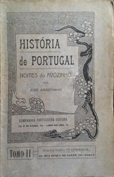 Clique nas imagens para aumentar. AGOSTINHO. (José) AS NOITES DO AVÔZINHO.Belezas da História de Portugal, Tomo II. Deposito Geral Livraria Portuguesa de Lopes & C.ª. Porto. De 19x12 cm. Com 61, [ii] págs. Brochado. Exemplar manuseado. Referência: 2511MA196