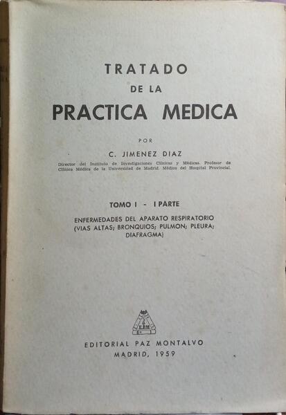 Clique nas imagens para aumentar. JIMENEZ DIAZ. (Carlos) TRATADO DE LA PRACTICA MEDICA.Por... Director del Instituto de Investigaciones Clínicas y Médicas[...] Tomo I - I Parte: enfermedades del Aparato Respiratorio (Vías Altas; Bronquios; Pulmón; Pleura: Diafragma). Editorial Paz Montalvo. Madrid. 1959. De 24,5x17 cm. Com 344 págs. Brochado. Ilustrado. Referência: 2511MA236