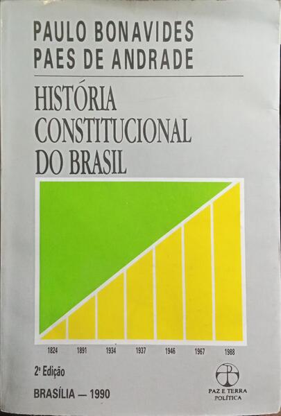 Clique nas imagens para aumentar. BONAVIDES. (Paulo) e Paes de Andrade. HISTÓRIA CONSTITUCIONAL DO BRASIL. [2.ª EDIÇÃO]2.ª Edição. Paz e Terra Política. Brasília. 1990. De 22,5x15,5 cm. Com 949 págs. Brochado. Exemplar com dedicatória do autor Paulo Bonavides na folha de guarda. Referência: 2511MA263