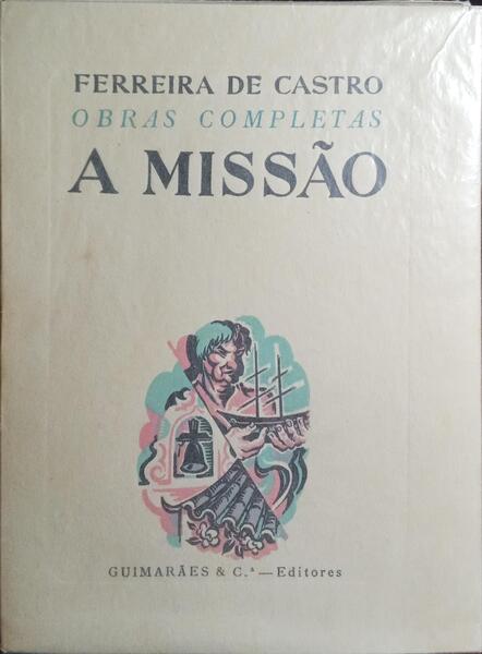 Clique nas imagens para aumentar. FERREIRA DE CASTRO. (José Maria) A MISSÃO. [BROC. COM CAIXA CARTONADA DO EDITOR]A Missão. A Experiência. O Senhor dos Navegantes. Coleção «Obras Completas de Ferreira de Castro». N.º13. Guimarães &; C.ª Lisboa. 1954. De 21,5x15,5 cm. Com 342, [ii] págs. Brochado, acondicionado em caixa de cartão do editor. Ilustrado em extratexto com duas gravuras protegidas por uma folha de papel vegetal. Contém ainda florões de remate e capitulares, sendo as primeiras de cada novela muito ornamentadas. As ilustrações desta edição foram feitas pela pintora Sara Afonso. Exemplar com sobrecapa em papel vegetal, caixa do editor com danos, lombada manuseada e carimbo oleográfico do ex-líbris do autor na folha de guarda posterior. Edição original de «A Missão», em papel avergoado, composta e impressa na Gráfica Santelmo, de Adelino dos Santos, de Lisboa, no ano de 1954. As gravuras que a ilustram foram executadas, a «offset», na Litografia Amorim, sendo a seleção cromática da Fotogravura Nacional, de Lisboa. Esta 1.ª edição é constituída pelos exemplares reservados aos assinantes das Obras Completas de Ferreira de Castro, em papel avergoado, e mais 650 exemplares, impressos no mesmo papel e com as mesmas ilustrações, destinados às pessoas que coleccionam primeiras edições do autor. Referência: 2511PA073