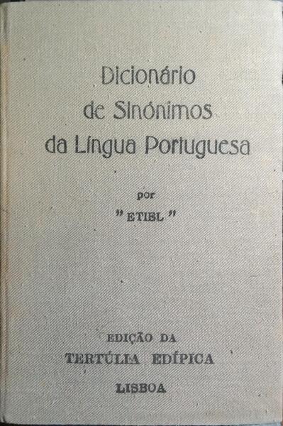 Clique nas imagens para aumentar. PEREIRA DE MELO. (Alfredo Leite) DICIONÁRIO DE SINÓNIMOS DA LÍNGUA PORTUGUES.[Por]... «Etiel», Sócio Fundador da Tertúlia Edípica. Edição da Tertúlia Edípica. Grupo Charadístico da Sociedade de Geografia de Lisboa. Lisboa. 1949. De 24x16 cm. Com xiv, 866, [i] págs. Encadernação do editor inteira de tecido. Nas páginas em numeração romana contém uma pequena nota sobre a editora; prefácio do autor que assina com Eliel; lista dos afixos da língua portuguesa; e dos Símbolos químicos. Apresenta texto disposto em duas colunas separados por filetes simples. Referência: 2511RS264