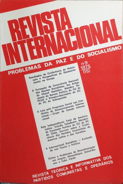 Clique nas imagens para aumentar. REVISTA INTERNACIONAL, PROBLEMAS DA PAZ E DO SOCIALISMO, ANO II, N.º 9, SETEMBRO 1975.Revista Teórica e Informativa dos Partidos Comunistas e Operários. Publicação Mensal. Director da Publicação: Cândida Ventura. Editora Avante. Lisboa. 1975. De 21x14,5 cm. Com 204 págs. Brochado. Referência: 2511RS520