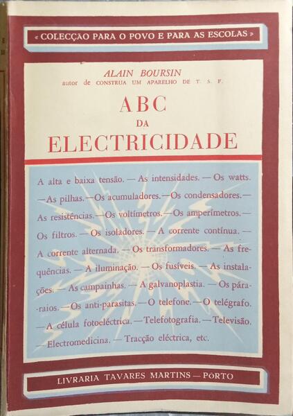 Clique nas imagens para aumentar. BOURSIN. (Alain) ABC DA ELECTRICIDADE. [ED. 1970][Por]... da Revista Francesa L’Amateur-Radio. Colecção Para o Povo e Para as Escolas, N.º 13. Livraria Tavares Martins. Porto. 1970. De 19,5x14 cm. Com 125, [ii] págs. Brochado. Ilustrado no texto com gravuras a preto e branco. Exemplar com assinatura de posse na folha de anterrosto. Referência: 2511RS525