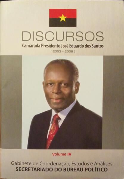 Clique nas imagens para aumentar. SANTOS. (José Eduardo) DISCURSOS DO CAMARADA PRESIDENTE JOSÉ EDUARDO DOS SANTOS NA SESSÕES DE ABERTURA DO COMITÉ CENTRAL, 2003-2009. [VOL. IV]Volume IV. Gabinete de Coordenação de Estudos e Análises. Secretariado do Bureau Político. Luanda. 2009. De 21,5x15 cm. Com 61 págs. Brochado. Ilustrado no texto com fotografias a cores. Referência: 2511RS635